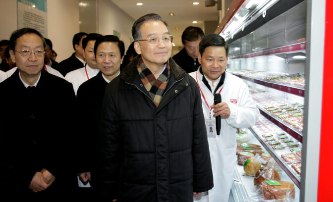 1月10日,中共中央政治局常委、國務院總理溫家寶一行視察、參觀江蘇雨潤食品產(chǎn)業(yè)集團有限公司總部工業(yè)園。