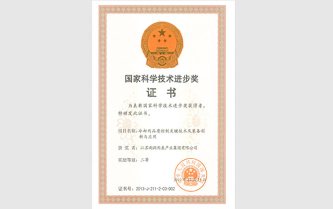 2014年1月10日上午,2013年度國家科學技術(shù)獎勵大會在北京人民大會堂隆重舉行。雨潤集團與南京農(nóng)業(yè)大學周光宏教授課題組共同完成的“冷卻肉品質(zhì)控制關(guān)鍵技術(shù)及裝備創(chuàng)新與應用”項目獲國家科學技術(shù)進步二等獎。 該獲獎項目研究歷時近20年,系統(tǒng)開展了冷卻肉品質(zhì)控制關(guān)鍵技術(shù)及裝備的研發(fā)與應用,在冷卻肉品質(zhì)形成和變化規(guī)律、冷卻肉品質(zhì)控制關(guān)鍵工藝技術(shù)以及關(guān)鍵裝備研發(fā)等方面,取得了重要進展。