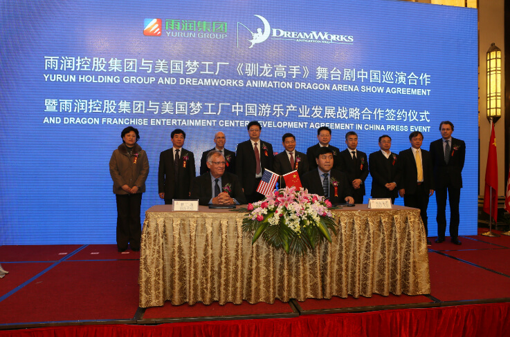 1月14日,雨潤與美國“夢工廠”在南京簽署全面戰(zhàn)略合作協(xié)議,獨家引進真人舞臺劇《馴龍高手》LIVE秀,拉開進軍文化產(chǎn)業(yè)的序幕。